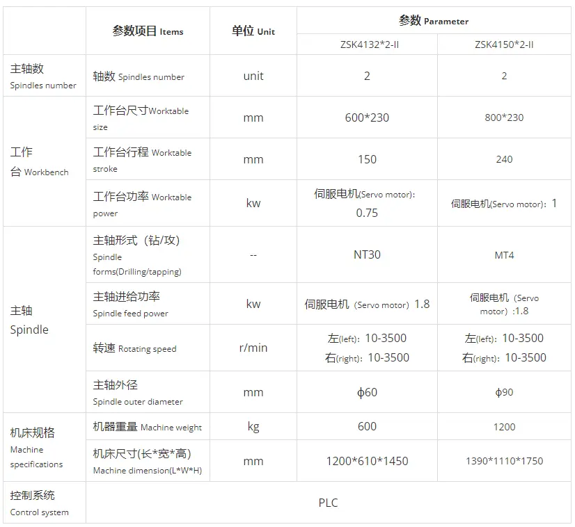 3. 电气系统采用PIC可编控制器,适用于批量零件加工,钻孔、攻丝一次性完成。